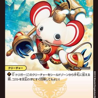 S・トリガー(この呪文をシールドゾーンから手札に加える時、コストを支払わずにすぐ唱えてもよい)相手は自身のアンタップしているクリーチャーを1体選び、マナゾーンに置く。自分のクリーチャーを1体、マナゾーンに置いてもよい。
