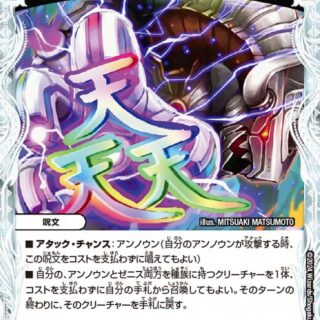 革命チェンジ:コスト7以上のアビスT・ブレイカー相手のコスト10以上のクリーチャーがあれば、このクリーチャーは離れない。自分のシールドがブレイクされた時、相手のクリーチャーを1体選び、破壊する。終極宣言:自分のターンのはじめに、アビス・クリーチャーを好きな数、自分の墓地またはマナゾーンからコストを支払わずに召喚してもよい。ただし、それらが出た時にトリガーする能力は、トリガーしない。このターン、それらのクリーチャーは相手プレイヤーを攻撃できる。(「終極宣言」は、ゲーム中に一度だけ使える)