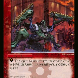 ブロッカー(このクリーチャーをタップして、相手クリーチャーの攻撃先をこのクリーチャーに変更してもよい)水晶武装2:自分のマナゾーンに裏向きのカードが2枚以上あれば、ブロック中のこのクリーチャーのパワーを+9000する。