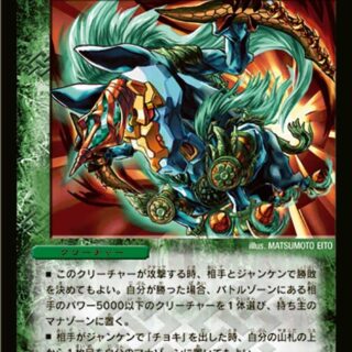 ブロッカー(このクリーチャーをタップして、相手クリーチャーの攻撃先をこのクリーチャーに変更してもよい)このクリーチャーが出た時、相手のクリーチャーを1体選び、タップする。次の相手のターンのはじめに、そのクリーチャーはアンタップしない。その後、自分のマナゾーンのカードを1枚、裏向きにしてもよい。(マナゾーンにある裏向きのカードは、マナの数字が1の無色カードとして扱う。その持ち主はそれをいつでも見てもよい)