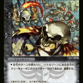このクリーチャーが出た時、自分の山札の上から4枚を見る。そのうちの1枚を手札に加え、残りを好きな順序で山札の下に置く。その後、自分のマナゾーンのカードを1枚、裏向きにしてもよい。(マナゾーンにある裏向きのカードは、マナの数字が1の無色カードとして扱う。その持ち主はそれをいつでも見てもよい)