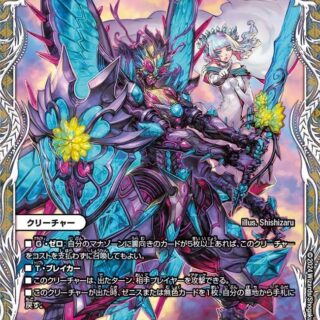 マッハファイターT・ブレイカーこのクリーチャーが出た時または自分が名前に《トラップ》とある呪文を唱えた時、自然のコスト6以下のクリーチャーを1体、自分の手札またはマナゾーンから出してもよい。