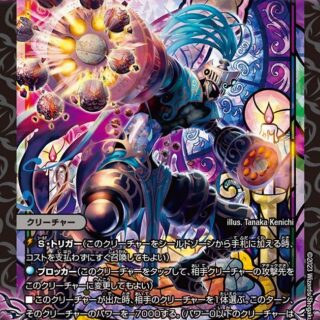 EXライフ(このクリーチャーを出す時、自分の山札の上から1枚目をシールド化する。このクリーチャーが離れる時、かわりにそのシールドを墓地に置く)ブロッカー(このクリーチャーをタップして、相手クリーチャーの攻撃先をこのクリーチャーに変更してもよい)マッハファイター(このクリーチャーは、出たターンの間、タップまたはアンタップしているクリーチャーを攻撃できる)スレイヤー(このクリーチャーがバトルする時、バトルの後、相手クリーチャーを破壊する)