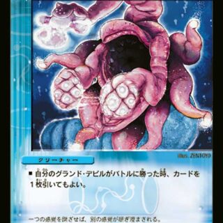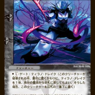 S・トリガー(このクリーチャーをシールドゾーンから手札に加える時、コストを支払わずにすぐ召喚してもよい)このクリーチャーが出た時、相手の手札を1枚見ないで選び、捨てさせる。