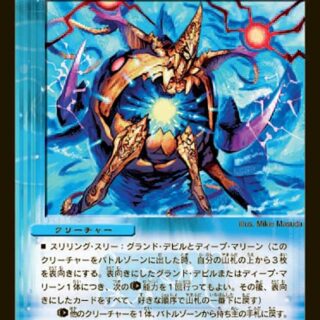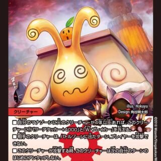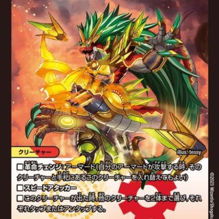 シンパシー:火のクリーチャー(自分の火のクリーチャー1体につき、このクリーチャーの召喚コストを1少なくする。ただしコストは0以下にはならない)各ターン、このクリーチャーがはじめて攻撃する時、このターン中に自分の火のクリーチャーを5体以上出していれば、自分のクリーチャーをすべてアンタップする。スピードアタッカーW・ブレイカー