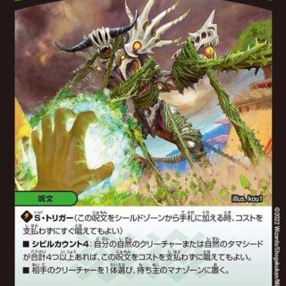 サバキZ(裁きの紋章が自分のシールドゾーンから手札に加えられた時、そのカードを捨ててもよい。そうしたら、この呪文をコストを支払わずに唱える)コスト7以下のメタリカを1枚、自分の手札から出す。この呪文を自分の手札から唱えた後、墓地に置くかわりに自分のシールド1つの上に表向きにして置く。