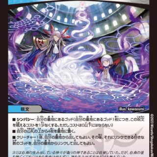{STP} S・トリガー・プラス(このクリーチャーを自分のシールドゾーンから手札に加える時、コストを支払わずにすぐ召喚してもよい。それが相手のターンで、そのターン中に自分のシールドが2つ以上ブレイクされていれば、このクリーチャーに{x+}能力を与える){x+}このクリーチャーが出た時、自分のクリーチャーを好きな数破壊してもよい。こうして破壊したクリーチャー1体につき、カードを2枚引く。ブロッカー自分のクリーチャーが破壊された時、相手のアンタップしているクリーチャーを1体選び、破壊する。