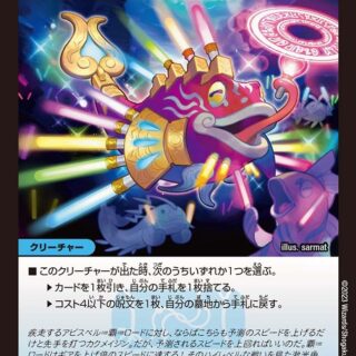 革命チェンジ:コスト5以上のアビス(自分のコスト5以上のアビスが攻撃する時、そのクリーチャーと手札にあるこのクリーチャーを入れ替えてもよい)パワード・ブレイカー(このクリーチャーは、そのパワー6000ごとにシールドをさらに1つブレイクする)自分の墓地のカード1枚につき、このクリーチャーのパワーを+1000する。このクリーチャーが出た時、自分の山札の上から4枚を墓地に置いてもよい。