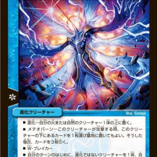 ジャストダイバーW・ブレイカーこのクリーチャーが出た時、次のうちいずれか1つを選ぶ。▶自分の手札を1枚捨て、カードを2枚引く。▶相手のコスト4以下のエレメントを1つ選び、破壊する。このクリーチャーが攻撃する時、アウトレイジ・メクレイド∞する。(アウトレイジ・メクレイド∞:自分の山札の上から3枚を見る。その中から、アウトレイジを1枚、コストを支払わずに使ってもよい。残りを好きな順序で山札の下に置く)