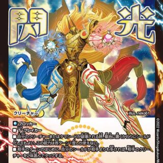 マッハファイターこのクリーチャーが攻撃する時、次のうちいずれか1つを選ぶ。▶自分のクリーチャーを1体選ぶ。このターン、そのクリーチャーのパワーを2倍にし、「パワード・ブレイカー」を与える。▶自分の山札の上から1枚目をマナゾーンに置く。▶コスト3以下のクリーチャーを1体、自分のマナゾーンから出す。