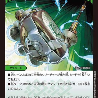 W・ブレイカー(このクリーチャーはシールドを2つブレイクする)自分のクリーチャーが破壊された時にトリガーする自分のクリーチャーの能力は、1度のかわりに2度トリガーする。このクリーチャーが攻撃する時、自分の他のクリーチャーを1体破壊してもよい。そうしたら、カードを2枚引く。