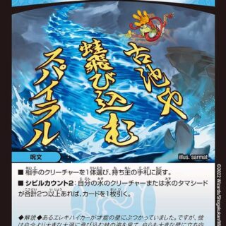 S・トリガー(この呪文をシールドゾーンから手札に加える時、コストを支払わずにすぐ唱えてもよい)相手のクリーチャーを1体選ぶ。次の自分のターンのはじめまで、そのクリーチャーは攻撃もブロックもできない。シビルカウント2:自分の水のクリーチャーまたは水のタマシードが合計2つ以上あれば、この呪文を自分の手札から唱えた後、もう一度、自分の墓地からコストを支払わずに唱える。