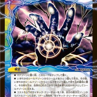 S・トリガー(このクリーチャーをシールドゾーンから手札に加える時、コストを支払わずにすぐ召喚してもよい)このクリーチャーが出た時、自分の手札または超次元ゾーンにあるクロスギアを1枚出してもよい。