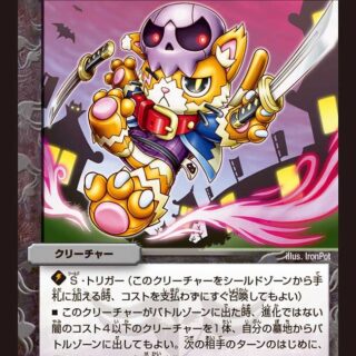 ブロッカー(このクリーチャーをタップして、相手クリーチャーの攻撃先をこのクリーチャーに変更してもよい)このクリーチャーは、自分のターンのはじめにアンタップしない。自分のタマシードがなければ、このクリーチャーは相手プレイヤーを攻撃できない。自分のタマシードが出た時、このクリーチャーをアンタップする。