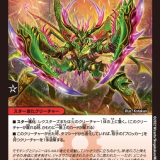 シビルカウント3:自分の火のクリーチャーまたは火のタマシードが合計3つ以上あれば、このクリーチャーに「パワーアタッカー+6000」と「W・ブレイカー」を与える。(「パワーアタッカー+6000」と「W・ブレイカー」を持つクリーチャーは、攻撃中パワーを+6000され、シールドを2つブレイクする)