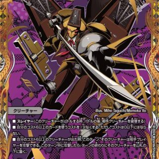W・ブレイカー(このクリーチャーはシールドを2つブレイクする)このクリーチャーが出た時、自分のクリーチャーを2体破壊する。その後、相手は自身のクリーチャーを1体選んで破壊する。
