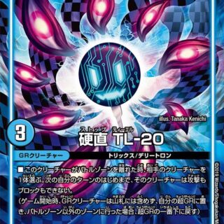 W・ブレイカー(このクリーチャーはシールドを2つブレイクする)自分の墓地にある闇または火のカード1枚につき、このクリーチャーの召喚コストを1少なくする。ただし、コストは0以下にはならない。相手がマナゾーンのカードをタップせずにクリーチャーを出した時、相手は自身のクリーチャーを1体破壊する。