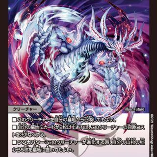 スピードアタッカーこのクリーチャーがバトルゾーンに出た時、自分の山札の上から1枚目を見る。そのカードを、山札の一番下に置いてもよい。マジボンバー 3(このクリーチャーが攻撃する時、自分の山札の上から1枚目を見る。その後、コスト3以下のクリーチャーを1体、自分の手札または山札の上から、バトルゾーンに出してもよい)