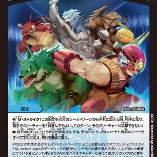ムゲンクライム 2(自分のクリーチャーを2体タップし、 [ww02]支払って、このクリーチャーを自分の手札または墓地から召喚してもよい)このクリーチャーがバトルゾーンに出た時、カードを2枚引く。