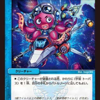 ジャストダイバー(このクリーチャーが出た時、次の自分のターンのはじめまで、このクリーチャーは相手に選ばれず、攻撃されない)自分のムートピアの召喚コストを2少なくする。ただし、コストは0以下にはならない。