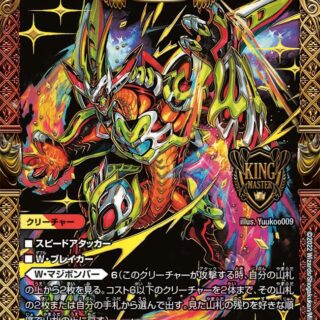 ビビッドロー [wf05](自分のターン中、攻撃の前にこのクリーチャーをドローした時、表向きにしてもよい。そうしたら、このターンこのクリーチャーを[wf05]支払って召喚してもよい)スピードアタッカーT・ブレイカーこのクリーチャーがバトルゾーンに出た時、カードを3枚引く。このクリーチャーは、ブロックされない。このクリーチャーの攻撃中、自分の手札の枚数以下のコストを持つクリーチャーを、相手はバトルゾーンに出せない。