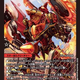 マナゾーンに置く時、このカードはタップして置く。革命チェンジ:水または闇のコスト5以上のドラゴン(自分の水または闇のコスト5以上のドラゴンが攻撃する時、そのクリーチャーと手札にあるこのクリーチャーを入れ替えてもよい)W・ブレイカーこのクリーチャーがバトルゾーンに出た時、カードを2枚引く。その後、相手はバトルゾーンまたは手札から、自身のカードを合計2枚選び、好きな順序で山札の一番下に置く。