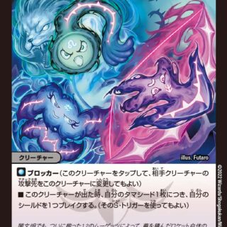マナゾーンに置く時、このカードはタップして置く。革命チェンジ:光または水のクリーチャー(自分の光または水のクリーチャーが攻撃する時、そのクリーチャーと手札にあるこのクリーチャーを入れ替えてもよい)このクリーチャーがバトルゾーンに出た時、光または水のコスト3以下の呪文を1枚、コストを支払わずに自分の手札から唱えてもよい。
