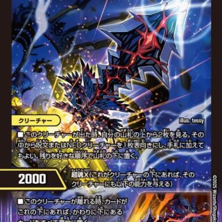 自分の進化クリーチャーの召喚コストを2少なくする。ただし、コストは0以下にはならない。スター進化:レクスターズまたは火のクリーチャー1体の上に置く。(このクリーチャーが離れる時、かわりに一番上のカードが離れる)W・ブレイカー(このクリーチャーはシールドを2つブレイクする)シンカパワー:このクリーチャーが進化する時、このターン、この進化したクリーチャーの各ブレイクの前に、カードを1枚引く。