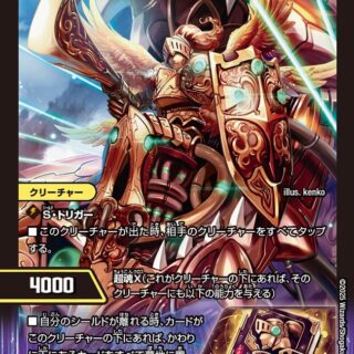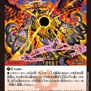 G・ゼロ:自分のタマシードが6枚以上あれば、このクリーチャーをコストを支払わずに召喚してもよい。スター進化:レクスターズまたは水のクリーチャー1体の上に置く。(このクリーチャーが離れる時、かわりに一番上のカードが離れる)このクリーチャーはブロックされない。T・ブレイカー(このクリーチャーはシールドを3つブレイクする)