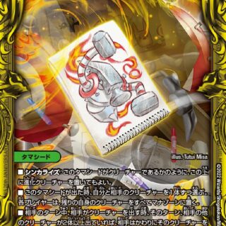 シンカライズ:このタマシードがクリーチャーであるかのように、この上に進化クリーチャーを置いてもよい。このタマシードが出た時、自分の山札の上から4枚を墓地に置く。その後、進化クリーチャーを2体まで、自分の墓地から手札に戻す。