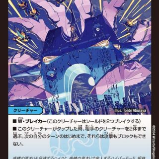 スター進化:レクスターズまたは自然のクリーチャー1体の上に置く。(このクリーチャーが離れる時、かわりに一番上のカードが離れる)W・ブレイカー(このクリーチャーはシールドを2つブレイクする)このクリーチャーが出た時、自分の山札の上から1枚目をマナゾーンに置く。