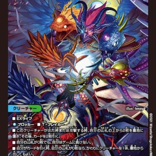 マナゾーンに置く時、このカードはタップして置く。W・ブレイカーこのクリーチャーがバトルゾーンに出た時、相手は自身の手札から7枚選び、捨てる。このクリーチャーが攻撃する時、相手のクリーチャーを1体、破壊する。