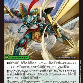 城:自分のシールドを1つ選び、このカードを付けて要塞化する。その要塞化されたシールドがシールドゾーンから離れた時、このカードを自分の墓地に置く。(「S・トリガー」を使う場合は、このカードを墓地に置く前に使う)バトルゾーンに自分のクリーチャーが5体以上あれば、自分の要塞化されたシールドはブレイクされない。自分のクリーチャーはすべてのバトルに勝つ。