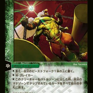 G.R.D.:このクリーチャーが攻撃する時、相手は自身の超GRの上から4枚目を横向きにする。横向きのカードが相手の超GRから離れた時、相手はゲームに負ける。自分のターンの終わりに、相手の山札または超GRのどちらかを選ぶ。そうしたら、その選んだ方の上から1枚目を、持ち主のマナゾーンに置いてもよい。