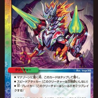 J・O・E 2 (このクリーチャーを、コストを2少なくして召喚してもよい。そうしたら、このターンの終わりに、これを自分の山札の一番下に置く。下に置いたら、カードを1枚引く)スピードアタッカー(このクリーチャーは召喚酔いしない)このクリーチャーがバトルゾーンに出た時、相手の「ブロッカー」を持つクリーチャーを1体破壊する。