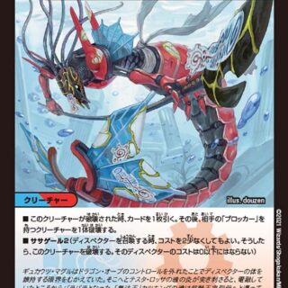 このクリーチャーの召喚コストを2少なくしてもよい。そうしたら、このターンの終わりに、このクリーチャーを手札に戻す。スター進化:レクスターズまたは水のクリーチャー1体の上に置く。(このクリーチャーが離れる時、かわりに一番上のカードが離れる)W・ブレイカー(このクリーチャーはシールドを2つブレイクする)このクリーチャーはブロックされない。