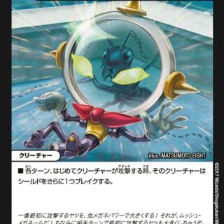 ブロッカー(このクリーチャーをタップして、相手クリーチャーの攻撃先をこのクリーチャーに変更してもよい)ジャストダイバー(このクリーチャーが出た時、次の自分のターンのはじめまで、このクリーチャーは相手に選ばれず、攻撃されない)