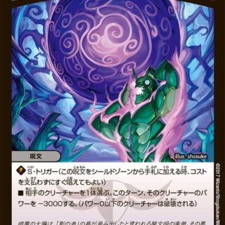 このクリーチャーが破壊された時、カードを3枚引き、その後、自分の手札を2枚、山札の上に置く。ササゲール1(ディスペクターを召喚する時、コストを1少なくしてもよい。そうしたら、このクリーチャーを破壊する。そのディスペクターのコストは0以下にはならない)