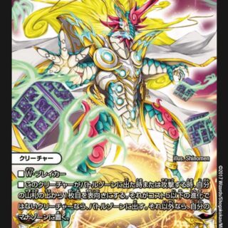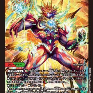 このクリーチャーの召喚コストを、マナゾーンにある自分のドラゴン1体につき2少なくする。ただし、コストは0以下にはならない。超無限進化:ドラゴン1体以上の上に置く。Q・ブレイカーこのクリーチャーが出た時または自分のターンのはじめに、自分の山札の上から1枚目を表向きにする。それがドラゴンなら、このクリーチャーの下に重ねる。メテオバーン:このクリーチャーが攻撃する時、このクリーチャーの下にあるカードを好きな数、墓地に置く。それらのコストの合計が20以上なら、このターンの後に自分のターンを追加する。