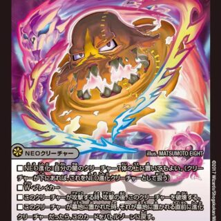 W・ブレイカーこのクリーチャーがバトルゾーンに出た時または攻撃する時、コスト7以下の進化ではないクリーチャーを1体、自分の墓地からバトルゾーンに出す。
