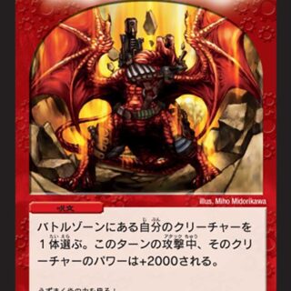 スピードアタッカー(このクリーチャーは召喚酔いしない)このクリーチャーがバトルゾーンに出た時、自分のマナゾーンにあるカードと同じ文明を持つ、コスト3以下のドラグハート・ウエポンを1枚、自分の超次元ゾーンからバトルゾーンに出してもよい。(このクリーチャーに装備する)