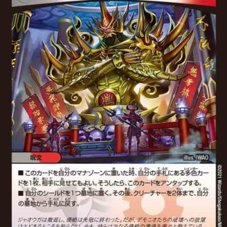このクリーチャーを自分の墓地から召喚してもよい。シンカパワー:このクリーチャーが進化する時、次のうちいずれか1つを選ぶ。▶カードを2枚引き、その後、自分の手札を1枚捨てる。▶相手のクリーチャーを1体選ぶ。このターン、そのクリーチャーのパワーを-5000する。(パワー0以下のクリーチャーは破壊される)