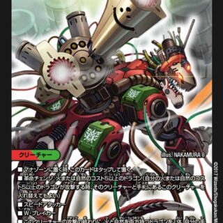 マナゾーンに置く時、このカードはタップして置く。自分の山札の上から5枚を表向きにし、その中からドラゴンを1体、バトルゾーンに出す。その後、自分の山札をシャッフルする。そのドラゴンに「スピードアタッカー」を与え、このターンの終わりに破壊する。チャージャー(この呪文を唱えた後、墓地に置くかわりに自分のマナゾーンに置く)