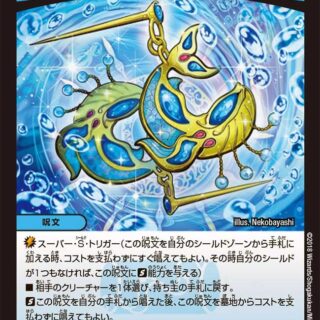 キリフダッシュ [nn02](自分のクリーチャーの攻撃の終わりに、そのクリーチャーがその攻撃中にシールドをブレイクしていれば、このクリーチャーを [nn02]支払って召喚してもよい)このクリーチャーがバトルゾーンに出た時、自分の山札の上から1枚目をマナゾーンに置く。
