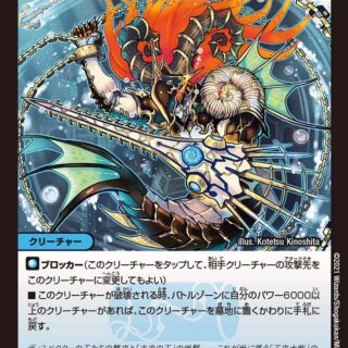 S・トリガー(この呪文をシールドゾーンから手札に加える時、コストを支払わずにすぐ唱えてもよい)相手は自身のクリーチャーを1体選び、マナゾーンに置く。バトルゾーンに自分のパワー6000以上のクリーチャーがあれば、カードを1枚引く。