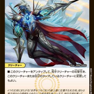 スター進化:レクスターズまたは火のクリーチャー1体の上に置く。(このクリーチャーが離れる時、かわりに一番上のカードが離れる)パワーアタッカー+6000 (攻撃中、このクリーチャーのパワーを+6000 する)W・ブレイカー(このクリーチャーはシールドを2つブレイクする)このカードが離れた時、その下にあったクリーチャーをアンタップする。