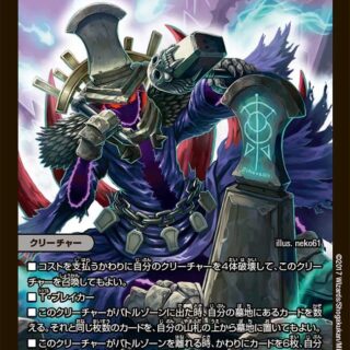 EXライフ(このクリーチャーを出す時、自分の山札の上から1枚目をシールド化する。このクリーチャーが離れる時、かわりにそのシールドを墓地に置く)ワールド・ブレイカー(このクリーチャーは相手のシールドをすべてブレイクする)このクリーチャーが出た時、またはこのクリーチャーの「EXライフ」シールドが自分のシールドゾーンを離れた時、相手のクリーチャーをすべてタップする。次の相手のターンのはじめに、それらのクリーチャーはアンタップしない。
