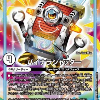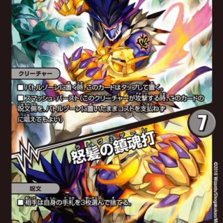 {GS} G・ストライク(このクリーチャーを自分のシールドゾーンから手札に加える時、相手に見せ、相手のクリーチャーを1体選んでもよい。このターン、そのクリーチャーは攻撃できない)EXライフ(このクリーチャーを出す時、自分の山札の上から1枚目をシールド化する。このクリーチャーが離れる時、かわりにそのシールドを墓地に置く)スレイヤー(このクリーチャーがバトルする時、バトルの後、相手クリーチャーを破壊する)W・ブレイカー(このクリーチャーはシールドを2つブレイクする)