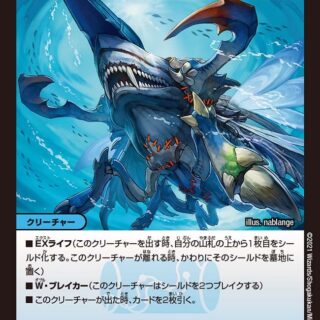 S・トリガー(この呪文をシールドゾーンから手札に加える時、コストを支払わずにすぐ唱えてもよい)自分のクリーチャーを1体選び、表向きにシールド化する。その後、相手のクリーチャーを1体選び、表向きにシールド化する。