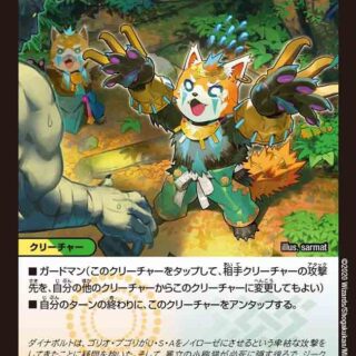 S・トリガー(このクリーチャーをシールドゾーンから手札に加える時、コストを支払わずにすぐ召喚してもよい)シールド・セイバー(自分のシールドがブレイクされる時、かわりにこのクリーチャーを破壊してもよい)